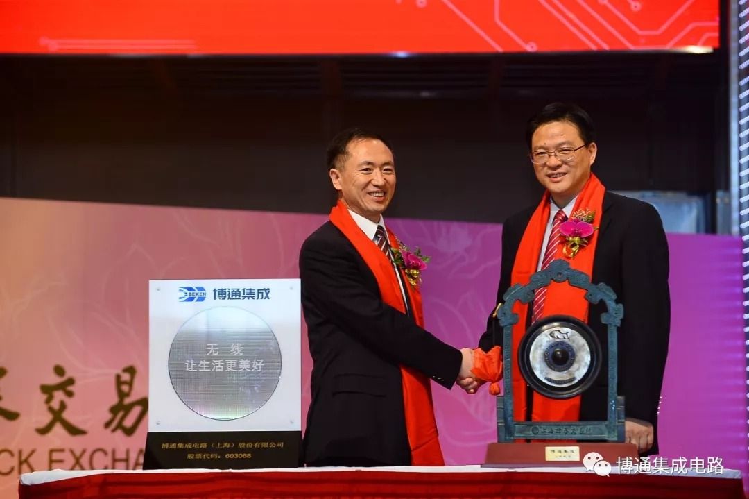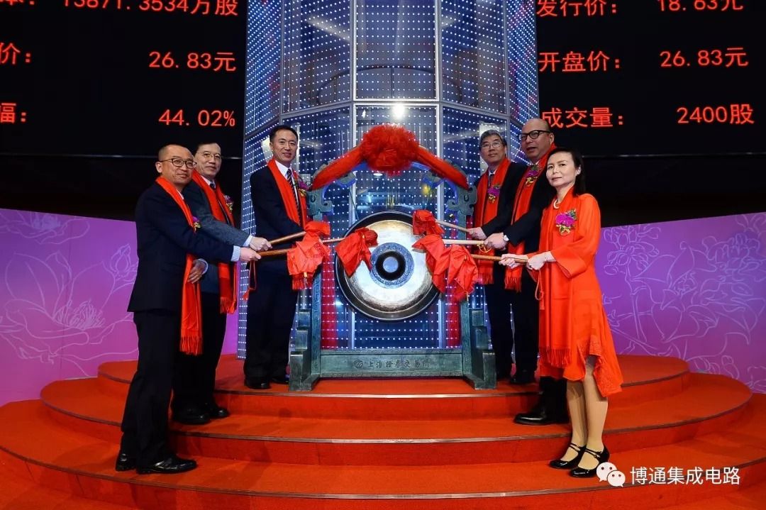 Mr. Fu Xinhua, Deputy Director of Shanghai Municipal Commission of Economy and Information Technology, Mr. Zhang Pengfei, Chairman and General Manager of Beken Corpration, Mr. Ye Xinjiang, Senior Executive and Managing Director of CITIC Securities, Mr. Guo Dawei, Deputy General Manager of Beken, Mr. Gao Bingqiang, former Dean of School of Engineering of Hong Kong University of Science and Technology, and Ms. Xu Wenjie, Director of Public Relations of Beken, jointly opened the trading of A-shares of Beken Corpration.