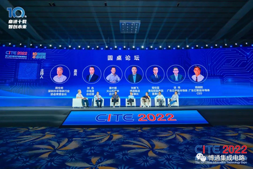 主题演讲后,深圳市半导体行业协会荣誉会长周生明主持圆桌论坛环节。公司董事长张鹏飞与中电港总经理刘迅、火山石资本合伙人董叶顺、青岛阳氢集团有限公司董事长程惊雷、广东芯粤能半导体CEO徐伟、广东芯聚能半导体 CEO周晓阳围绕“在新国际形势下,国内汽车产业如何搭建安全的供应链?”、“第三代半导体如何对汽车电子的支撑?”、“汽车芯片未来发展趋势”等问题进行了深入讨论。